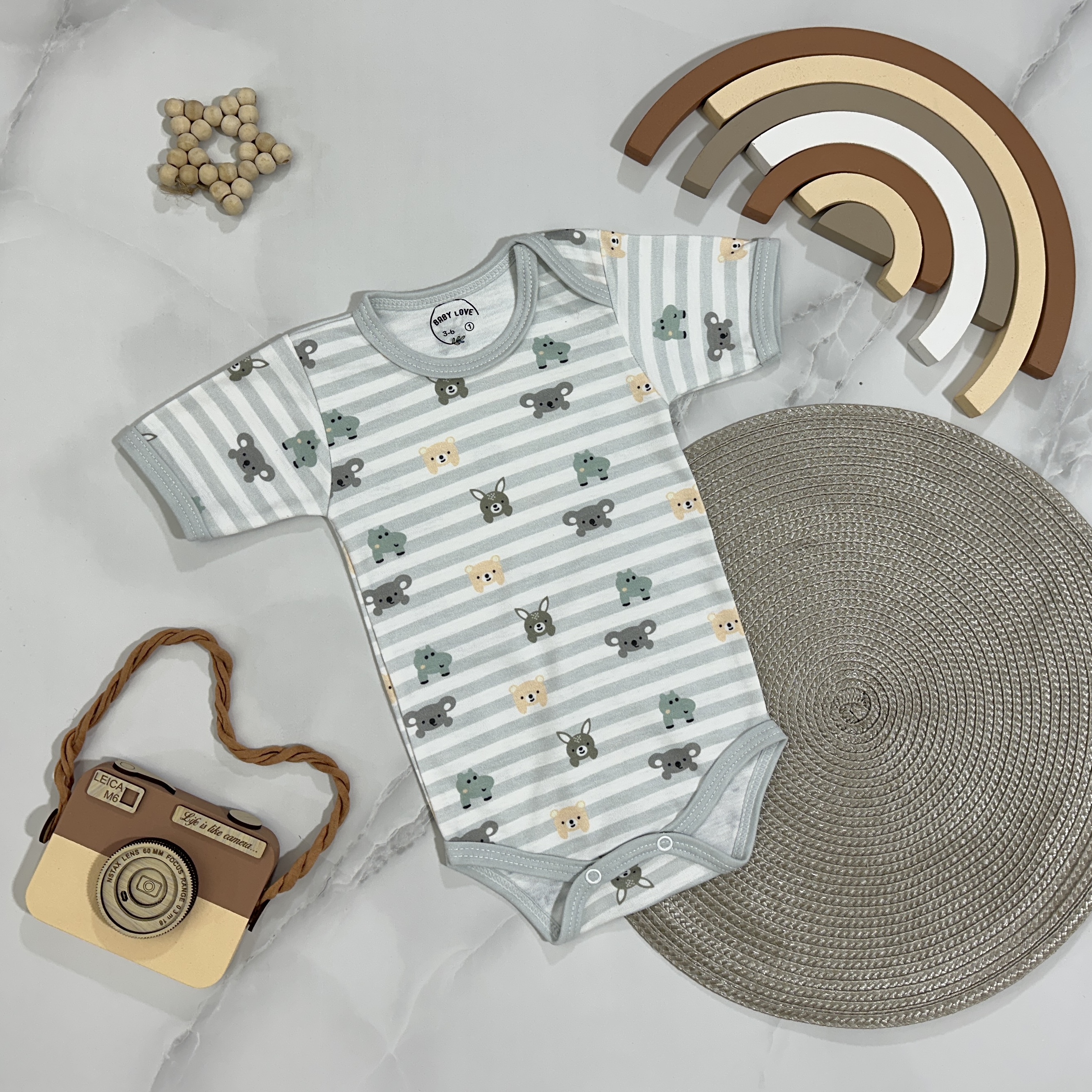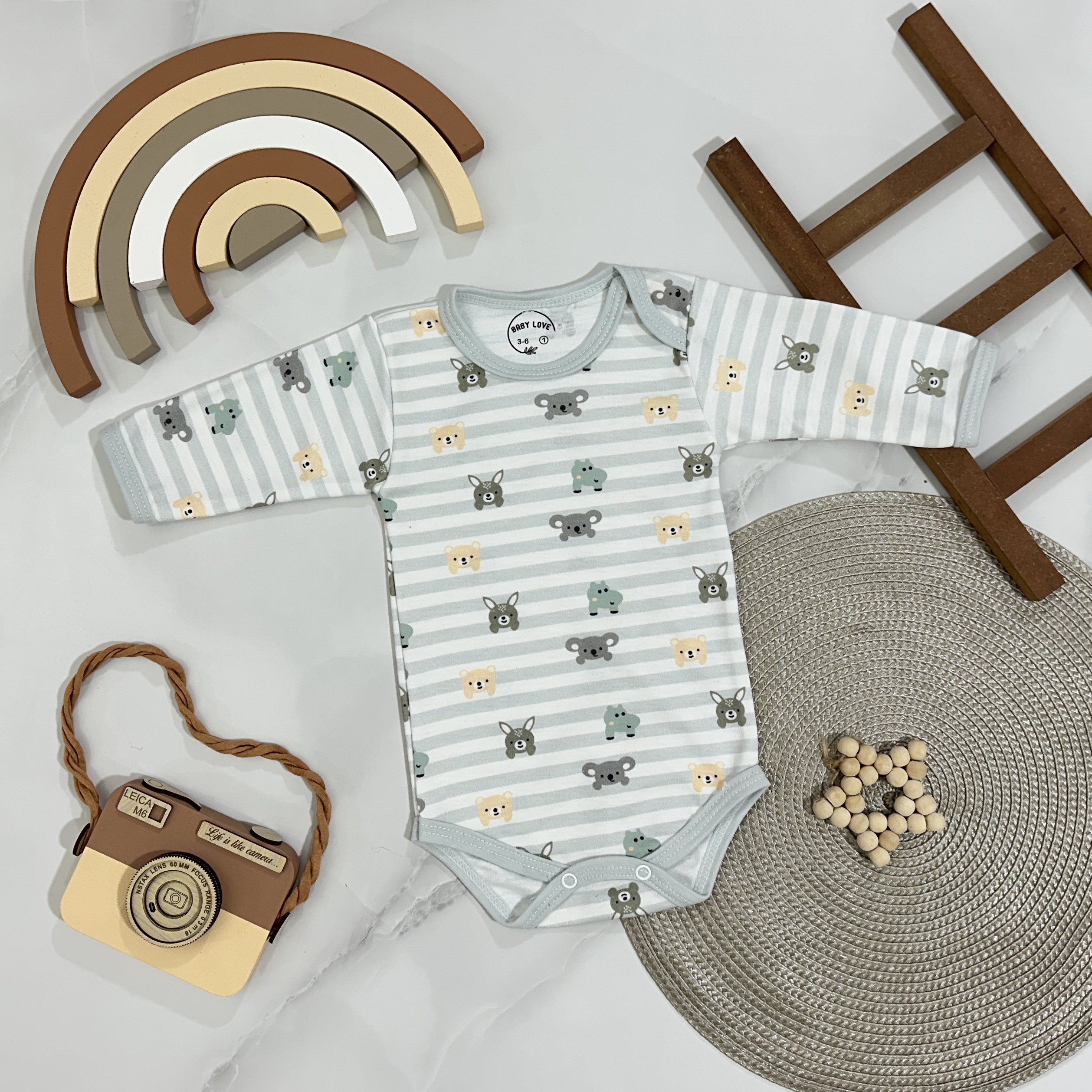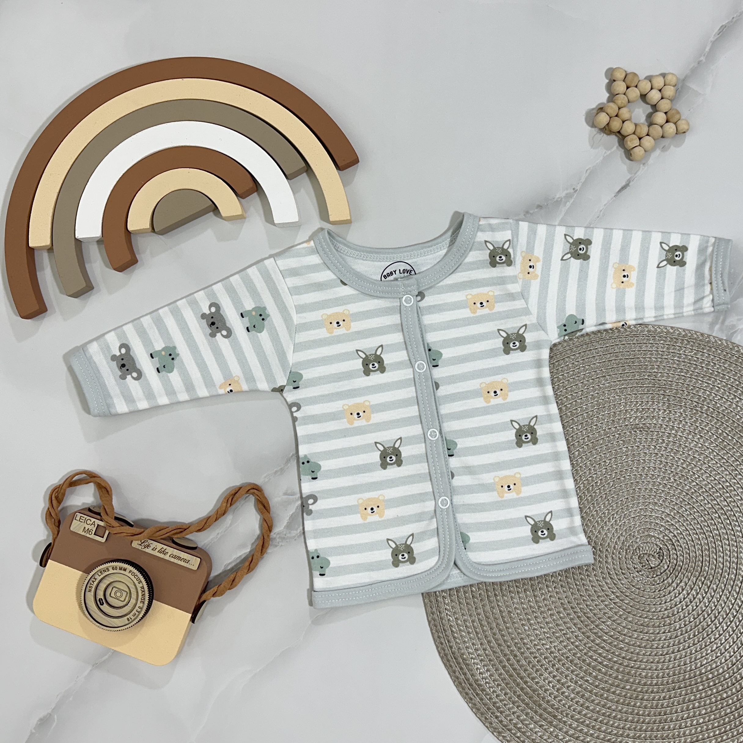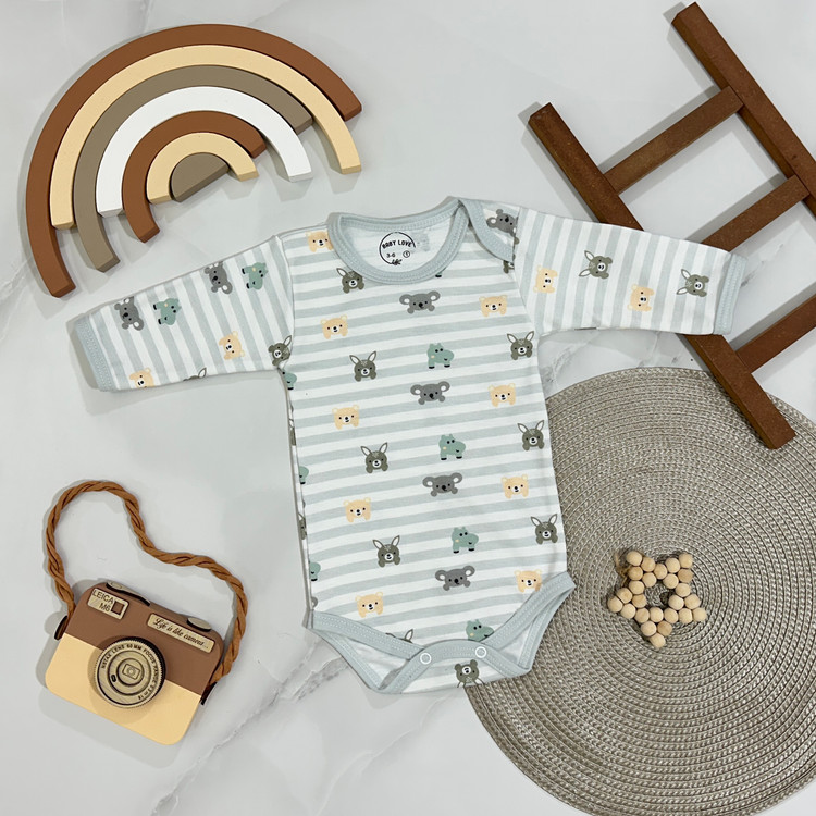 سرویس باز نوزادی برند بی بی لاو مدل خرس و خرگوش یکی از پرفروش ترین لباس های تیکه ای می باشد، این سرویس باز شامل 9 تیکه می باشد 1- آستین بلند 2-آستین کوتاه 4-آستین بلند زیر دکمه 5- آستین کوتاه زیر دکمه 6- رکابی زیر دکمه 7-جلو دکمه (مانتویی) 8- شورت 9- شلوار می باشد.